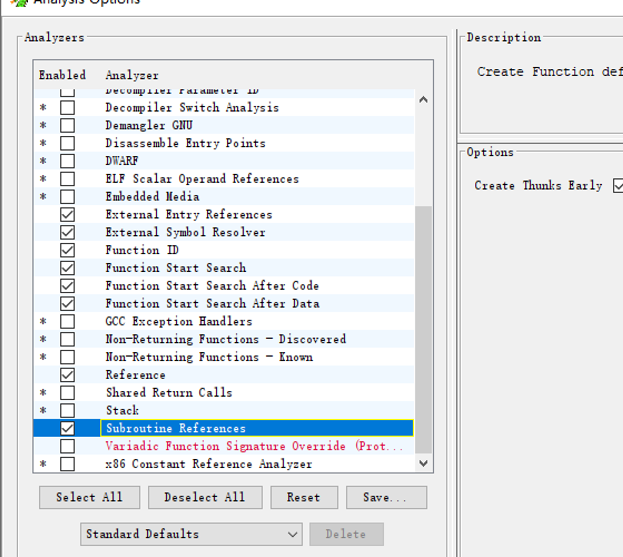 剩下的函数入口识别组件就是通用的做法了，可以在主页的analysis功能中查看，也可以自己勾选上跑一下试试。相关信息在“递归下降的反汇编”章节已经有说明。